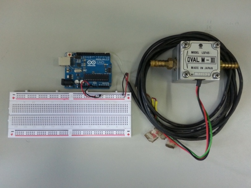 To determine the fuel flow, a volumetric flow sensor was used, model FLOWMATE Oval M-III LSF45L0-M2, with magnetic sensor, reading pulse unit of 10mL pulse-1, maximum flow of 500 L h-1, voltage from 12 to 24 V of continuum current (VCC), maximum consumption at 10mA and exit pulse type 0/1 = maximum 0.5 VCC / 6.2 at 7.6 VCC, with minimum resistance of 10 kΩ (Figure 3).