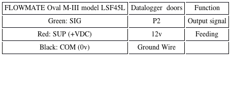 Table 3 demonstrates inputs and outputs from connections of the sensor for volumetric flow and the Datalogger.