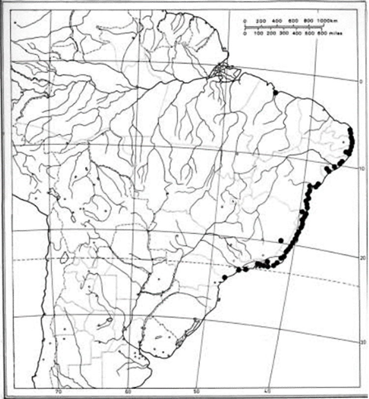 Seu habitat se concentra na maior parte do litoral brasileiro em praias, ilhas, dunas e restingas (Figura 2). Sendo endêmica do Brasil, pode ser encontrada nos estados da região Sudeste e Nordeste, com exceção dos estados de Minas Gerais, Piauí e Ceará (SÁ, 2015; FURLAN; GIULIETTI, 2014).