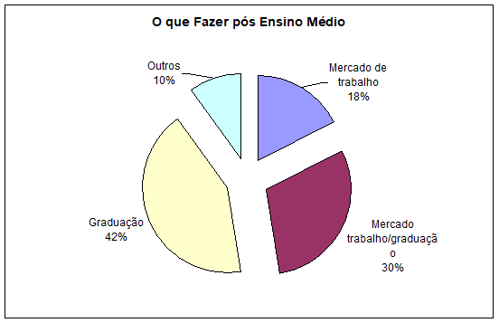 Esses dados revelam que a maioria dos alunos, 42,5%, pretendem entrar para o ensino superior, buscando status e melhor qualificação que lhes dê possibilidade de ascensão social e melhores condições de remuneração. Já 30% apontaram que pretendem ir para o mercado de trabalho e/ou para graduação após terminar o EMTP. Por fim, 17,5% apontaram a preferência por ir para o mercado de trabalho.
