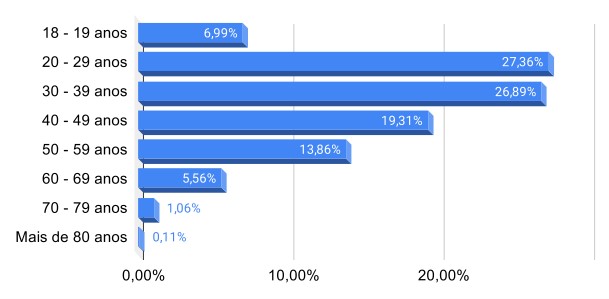 Como consequência do método utilizado para a divulgação da pesquisa – as redes sociais e aplicativos de mensagens –, observa-se a predominância de jovens e adultos entre os participantes, com uma menor representatividade de respostas provindas de pessoas idosas1 (Figura 1).