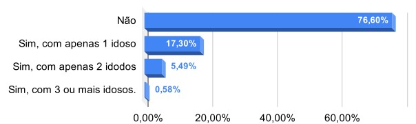 Com relação ao convívio com pessoas na faixa etária de maior risco de complicações para a Covid-19, 23,4% dos participantes afirmam compartilhar a sua moradia com um ou mais idosos (Figura 3), destacando a importância de se identificar, acompanhar e instruir os moradores de tais residências.