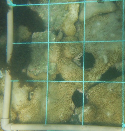 A análise dos dados foi realizada adaptando a metodologia descrita por Miranda, Cruz e Leão (2013). Desta forma, foram obtidos dados baseados nas fotografias dos quadrados feitas durante as expedições (Figura 2). Em cada um destes foram contados o número de colônias (NC), número de colônias branqueadas (NCB) e a média (DP) da porcentagem da área estimada da colônia afetada por diferentes intensidades de branqueamento (fraco ou forte) por cada espécie de organismo. Foi realizado o cálculo estimado da porcentagem da área afetada da colônia pelo branqueamento total (BT), o branqueamento fraco (BFR) e o branqueamento forte (BFO).