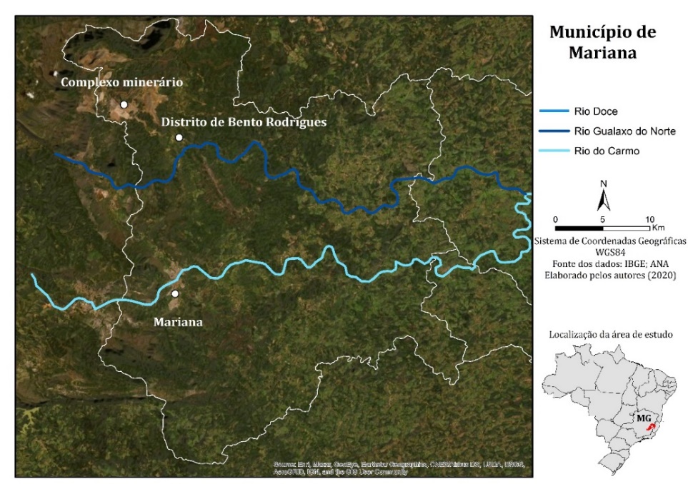O município de Mariana em Minas Gerais, localizado a 122 km da capital Belo Horizonte e situado na Zona Metalúrgica do estado, conhecido como Quadrilátero Ferrífero, sofreu com o rompimento, no dia 5 de novembro de 2015, da barragem de Fundão, utilizada pela empresa Samarco Mineração S.A., mineradora controlada pela empresa brasileira Vale e pela empresa anglo-australiana BHP Billiton. O rompimento da barragem ocasionou a liberação de lama e rejeitos de minério de ferro provindos da mineradora, os quais afetaram 38 municípios1 no estado de Minas Gerais, que abrigavam uma população de cerca de 1,1 milhão de pessoas, 5,3% do contingente populacional do estado de Minas Gerais (IBGE, 2015). No entanto, a extensão da onda de rejeitos terminou na foz do rio Doce, em Linhares, estado do Espírito Santo, percorrendo mais de 650 km (ANA, 2016).