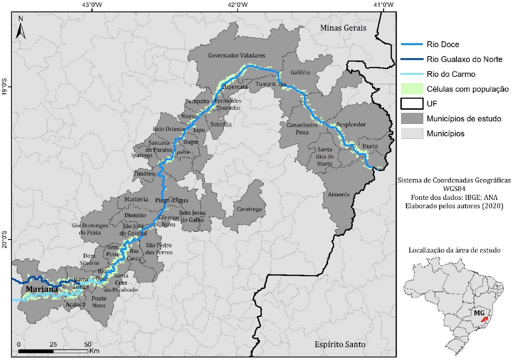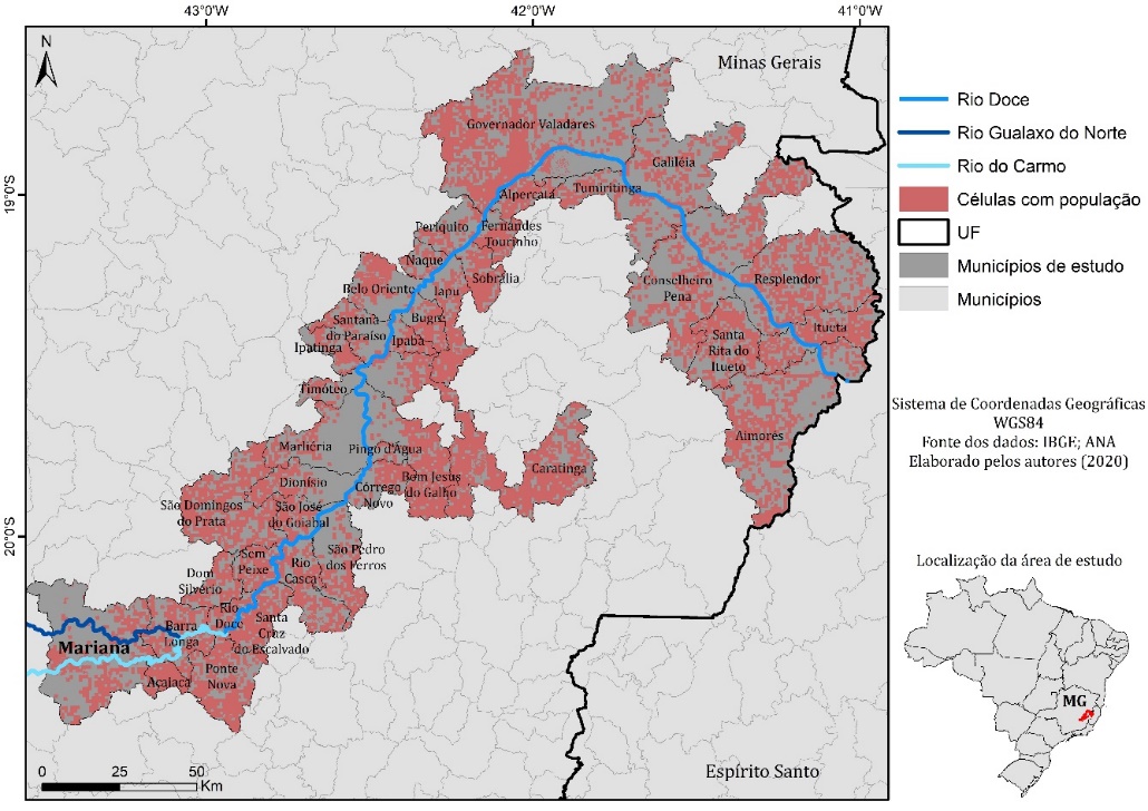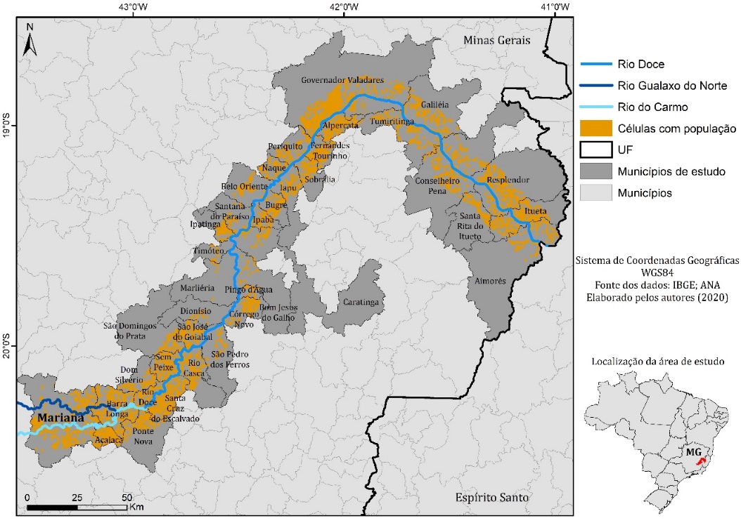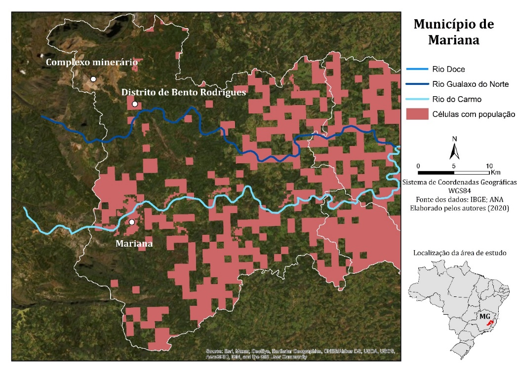 Abstract: Risk is constructed by the specific time-territory interaction of two factors – threats and social vulnerabilities. From this perspective, this article analyzes the failure of the mining tailings dam located in the municipality of Mariana, in Minas Gerais, based on a theoretical discussion on disasters. This approach starts with the concept of social construction as well as considerations on the historically constructed risk and the implications of defining them as such. The methodology used in the study proposes the analysis of the inherent risks, the spatial distribution of the population, as well as the estimation of the affected population by analyzing the data available in regular grids determined by the Brazilian Institute of Geography and Statistics (IBGE), in reference to the Demographic Census (2010). Using grid cells, we estimate the affected population, an aspect that may be an important contribution to the post-disaster moment. Potential impacts were also estimated considering different distances related to water courses that were affected by the disaster.