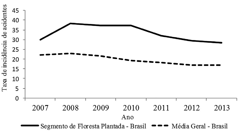 O objetivo geral deste estudo é a analisar a taxa de incidência (TI) dos acidentes de trabalho ocorridos no setor de florestas plantadas nos estados brasileiros, no período de 2007 a 2013, e realizar um comparativo com a média nacional.