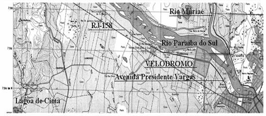 3) Os materiais - A geografia supracitada da cidade, apropriada para implementação do projeto do Complexo; previsto para ser implantado numa área, atualmente descampada, ao lado da Avenida Presidente Vargas, início da RJ-158 (Campos - São Fidélis), a 20 min de Lagoa de Cima e da Cachoeira do Imbé, no bairro Parque Corrientes; junto ao Rio Paraíba do Sul, em sua região mais profunda, onde existem duas ilhas, num trecho que apresenta as águas mais claras, pois neste local desemboca um afluente, o Rio Muriaé. Atualmente, nesta área existe apenas plantação de cana-de-açúcar, pertencente à Usina Santa Cruz (Figura 7).
