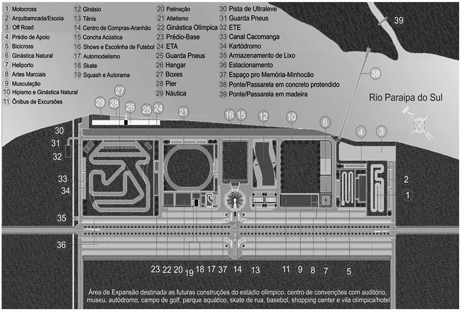 Este trabalho propõe ainda, a partir do Plano Diretor Municipal de CG, das normas de acessibilidade e mobilidade urbana, e do ciclo de vida de um Projeto que resulte numa parceria público-privada; com a qual os poderes públicos possam investir numa infraestrutura para implantação de um Complexo que tenha em seu escopo, arruamento com estrutura para rede elétrica, lógica, gás e esgoto, instalação de água potável alimentada por meio de estação de tratamento própria e estação de tratamento de efluentes; lixeiras para coleta seletiva, arquibancadas-escola, heliporto; prédios-base que constituem administração, pronto-socorro, posto avançado do Corpo de Bombeiros e Polícia Militar, segurança interna patrimonial e industrial, centro de convenções com auditórios, shopping, torre de controle, espaço pró-memória e biblioteca; espaço com palco para shows, áreas verdes, muros com acessos específicos, estacionamentos e urbanização das comunidades carentes próximas ao complexo. Já a iniciativa privada entra com o projeto de construção e/ou utilização dos espaços (produtos), segundo a descrição do seu escopo e de um regimento interno preestabelecido.