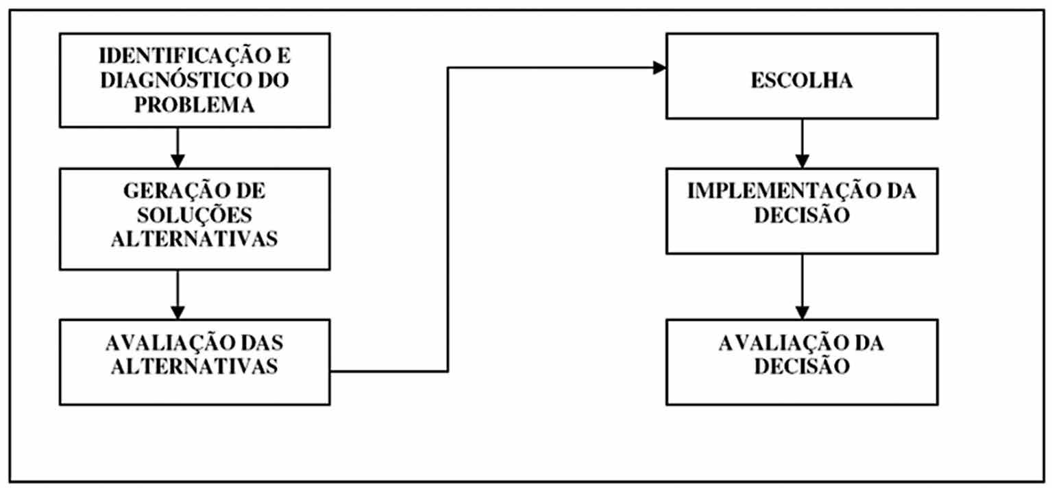 Decisão, segundo Rosini e Palmisano (2003, p. 5) “é a escolha de uma ou mais alternativas com o fim de atingir um objetivo proposto com a menor probabilidade de erro ou fracasso possível”. O processo de tomadas de decisão passa por vários estágios, conforme apresentados na Figura 1.