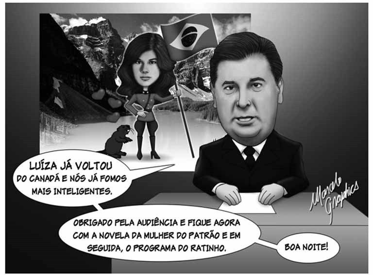 [i19]: Bom, eu acho q telejornal dá informações das notícias do momento e a tal “Luiza q voltou ou foi pro Canadá” é o assunto do momento. A função do telejornal é informar e assim eles fizeram. [...]