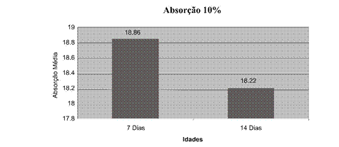 Os ensaios de resistência à compressão e à absorção dos tijolos moldados com 10% de adição de cimento foram realizados aos 7 e 14 dias, como mostram os gráficos 03 e 04, de acordo com a Norma devidamente comentada.