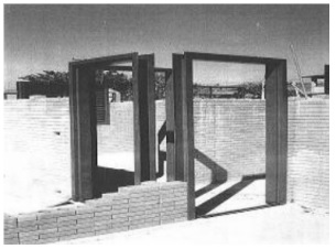Comparando-se os elementos construtivos cerâmica, concreto e solo-cimento, observa-se que as construções com os dois primeiros tipos certamente são mais caras por dependerem de combustíveis fósseis e consumirem materiais nobres e cada vez mais escassos, por utilizarem argamassa de assentamento e de revestimento, além da necessidade dos cortes nas paredes necessários para a colocação das instalações elétrica e hidráulica (Fotos 5 e 6) (CASANOVA, 2004).