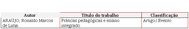 Nessa publicação (Quadro 2), Araújo (2013) retoma sua percepção sobre como a prática pedagógica integradora resgata o caráter revolucionário contido no projeto de ensino integrado como também seu conteúdo político e filosófico. O autor ressalta como os ideais de ‘trabalho como princípio educativo’ tem inspirado diferentes projetos de educação destinada aos trabalhadores, nessa seara inclui-se o tema em questão.