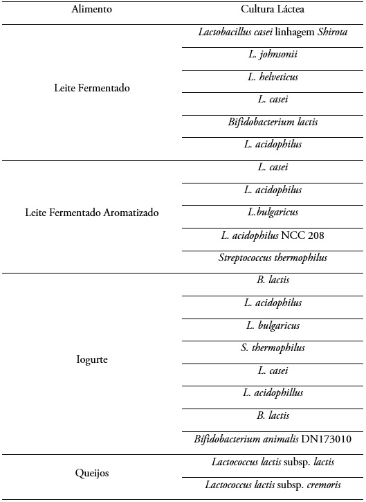 Diante dos avanços na área sobre o emprego das BAL e suas contribuições à saúde humana, muitas empresas desenvolveram e licenciaram suas próprias culturas lácteas. Na Tabela 2 são apresentados os principais segmentos de produtos lácteos e as respectivas culturas usadas em sua produção.