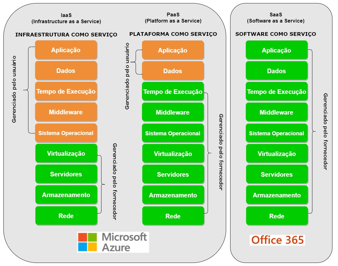 A estrutura de gerenciamento de cada modelo de serviço está demonstrada na Figura 1, tendo como exemplo o provedor Microsoft Azure e o Office 365.