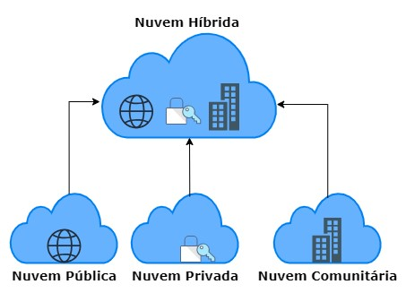 Outra classificação é feita em relação aos modelos de implantação: nuvem pública, nuvem privada, nuvem comunitária ou nuvem híbrida (MELL; GRANCE, 2011). Conforme pode ser observado na Figura 2.