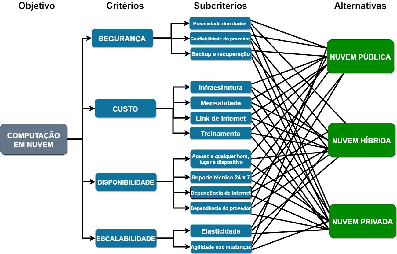 Palavras-chave: computação em nuvem, modelos de implantação, tomada de decisão, análise multicritério, processo de análise hierárquica.