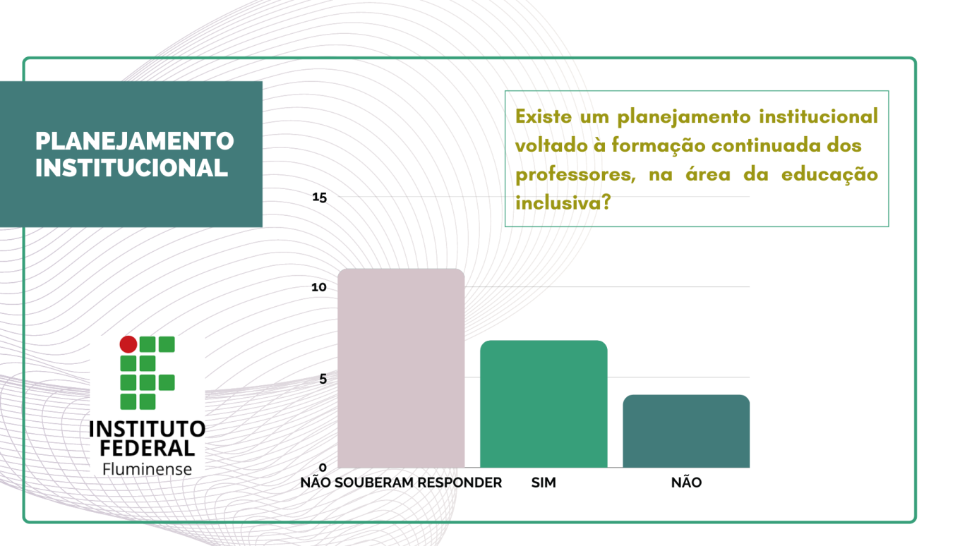 Nesse sentido, buscou-se verificar se os docentes tinham conhecimento de um planejamento institucional voltado às ações de capacitação no âmbito da educação inclusiva.