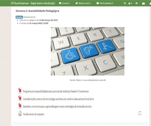 Na terceira semana do curso foram abordados os conteúdos relacionados à acessibilidade pedagógica e a proposta de atividade: Envio de Arquivo (Figura 7).
