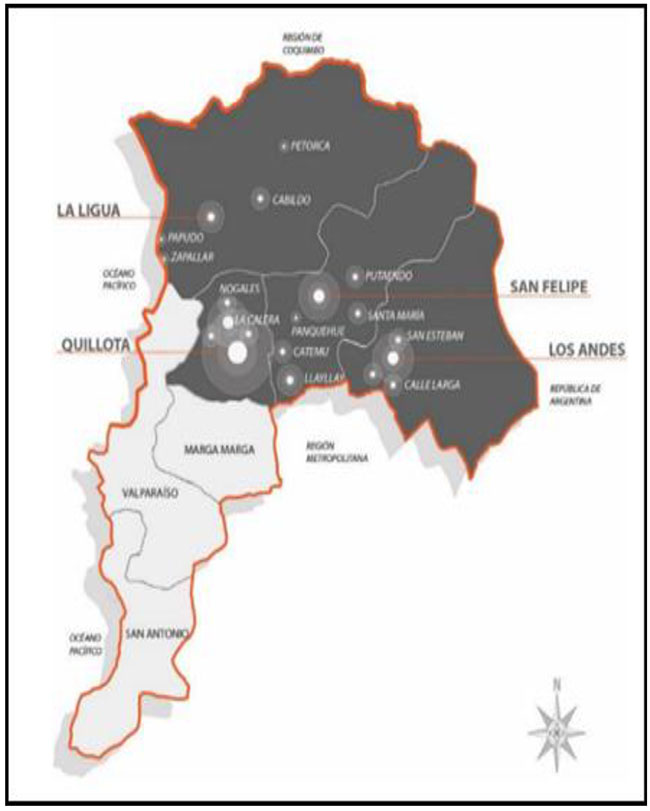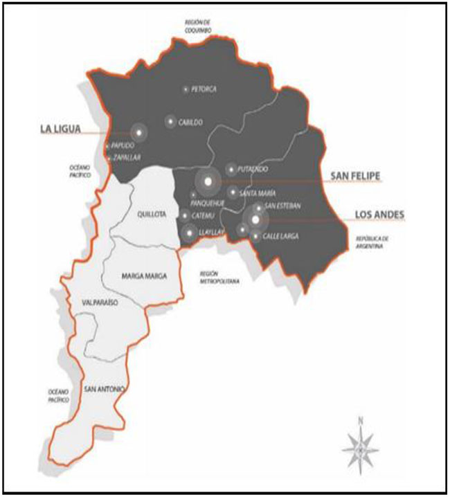 Las provincias de Aconcagua, considerando el carácter ambiguo que trae consigo la utilización del término -en tanto no existe una unidad político-administrativa con el nombre como tal-, fueron incluidas durante la década del 70` a la Región de Valparaíso (ver mapa 4), la cual se convirtió en la tercera región con mayor cantidad de habitantes del país. En la actualidad destaca por ser la sede del Poder Legislativo; poseer una amplia actividad económica productiva en base a la minería, industria y recursos agrícolas; ostentar un gran flujo de mercancías a través de los puertos de Los Andes (terrestre), San Antonio y Valparaíso; además de un amplio atractivo turístico que le permite situarse con ventajas comparativas frente a otras regiones.