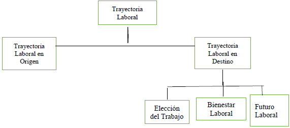 Trayectoria laboral en origen constituye la primera categoría la cual guarda relación con los trabajos que el migrante ha tenido en su país de origen y los ámbitos en los que se ha desempeñado,