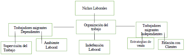 Organización del trabajo es la primera categoría debido a que constituye la descripción de como trabajadores dependientes e independientes desarrollan sus labores.
