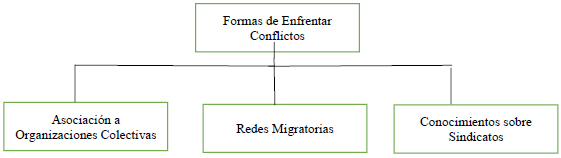La segunda categoría Redes Migratorias, comprende los vínculos entre los entrevistados y otros migrantes, con quienes se apoyan en la inserción laboral en la sociedad de destino