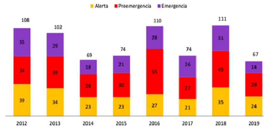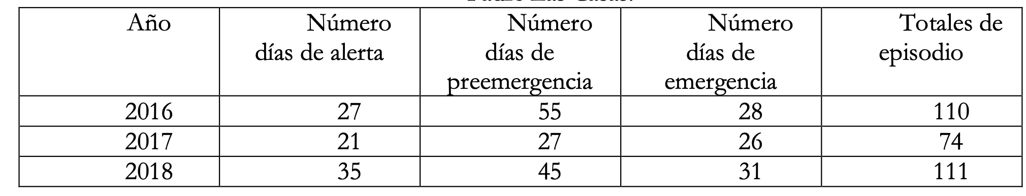 Desde 2015 a la fecha, el PDA, ha considerado una serie de medidas concretas, entre las que cabe destacar, la Regulación para el control de emisiones asociadas a calefacción domiciliaria, Regulación referida al uso y mejoramiento de la calidad de los artefactos, Regulación referida al mejoramiento de la eficiencia térmica de la vivienda, Gestión de Episodios Críticos (GEC), Regulación para el control de emisiones del transporte. Dichas medidas, no han surtido los efectos esperados, siendo la cantidad de episodios críticos, divididos en días de alerta, preemergencia y emergencia, fluctuantes entre un año y otro sin denotar cambios importantes en los indicadores finales, tal como muestra la siguiente tabla: