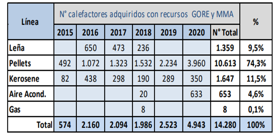 En relación al recambio de calefactores, se han adquirido más de 14.000 de estos artefactos a contar del año 2015 lo que representa un 52.8% de la meta propuesta y que debía cumplirse a contar de 5 años de la entrada en vigencia de la normativa.