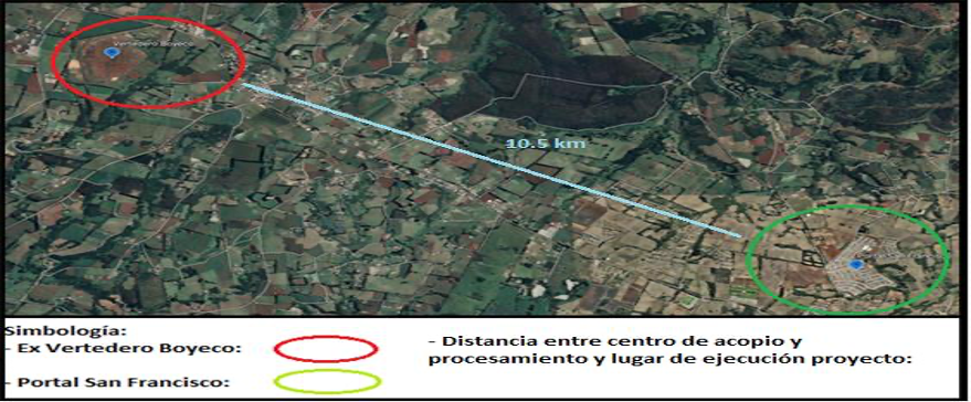 Otro elemento interesante a la hora de sopesar y trazar la posible ubicación de dicha planta generadora de biomasa apta para proveer al portal San Francisco, es que y dado el estado de cierre en que se encuentra el vertedero, se ha seguido monitorizando las chimeneas de ventilación de biogás generado instaladas una vez cerrado dicho vertedero, las cuales y de acuerdo un estudio denominado “Informe Anual de Caracterización Biogás Generado en el Ex Vertedero Boyeco” a cargo de Cosmovitalis Consultores en el marco del plan de seguimiento y monitoreo post cierre del vertedero se informa que y tras un análisis y toma de muestras realizadas en dichas chimeneas de ventilación, el biogás generado actualmente alcanza un 100% de inflamabilidad y niveles de metano con frecuencia de alrededor del 60% lo que lo hacen igualmente combustionable. Este elemento resulta interesante puesto que, el futuro proyecto de planta receptora y generadora de biomasa puede llegar a funcionar total o parcialmente gracias al biogás generado en el entorno dada la descomposición de la materia orgánica del ex vertedero Boyeco