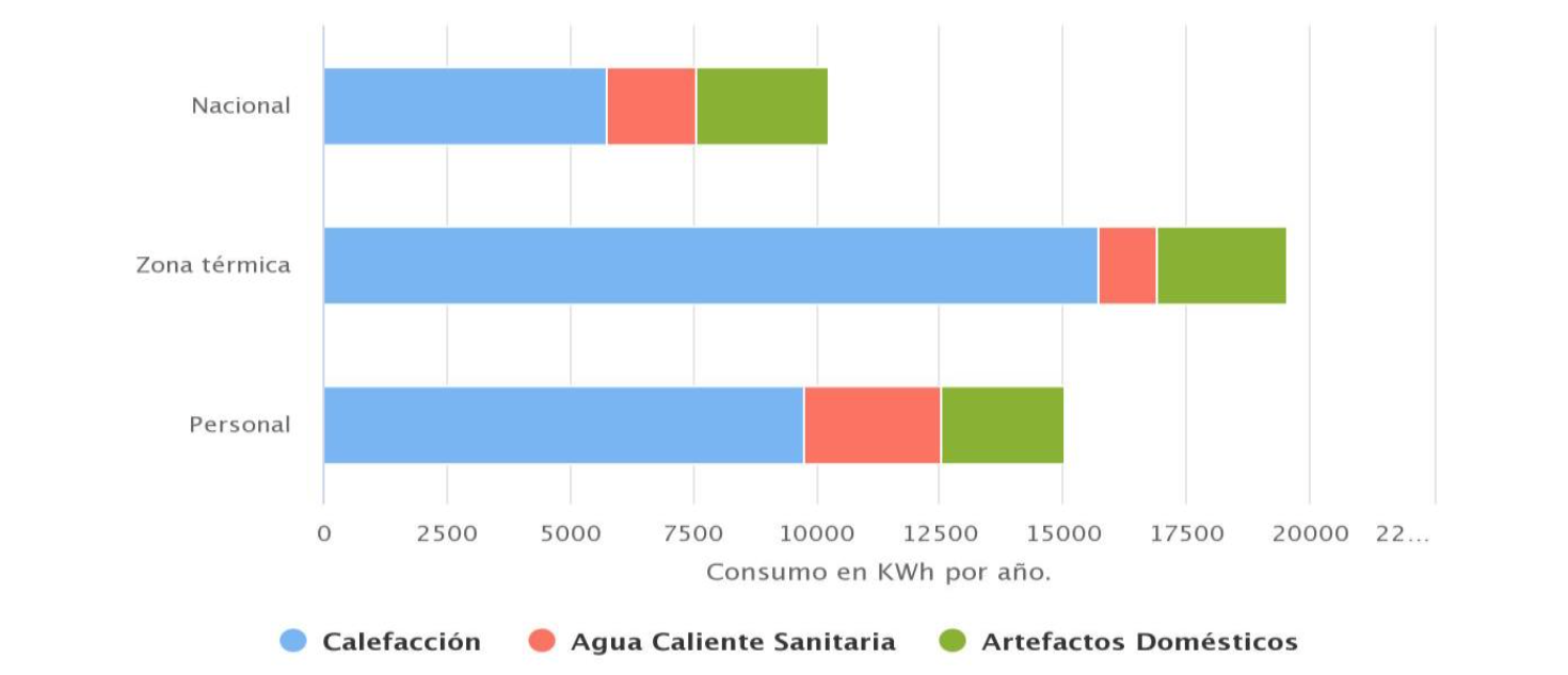 - Calefacción Personal: 9.728 KWh por año, equivalente a 9.728 MW anuales, lo cual corresponde a un consumo sostenido mensual d
