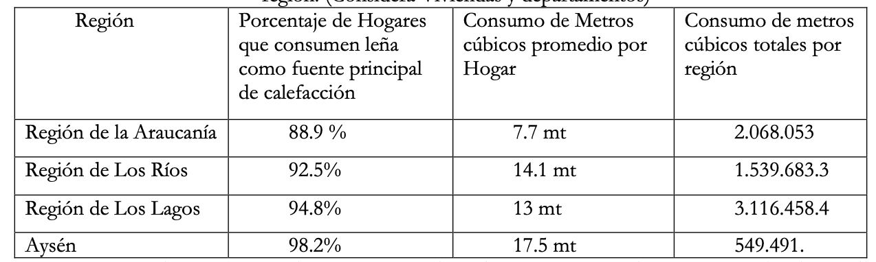 Yañez (2012), frente a la problemática ambiental y el uso indiscriminado de leña en la macro zona sur, sostiene lo siguiente:
