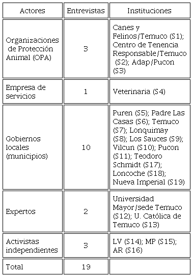 La investigación es de tipo cualitativo-descriptiva, que aplicó entrevistas a actores clave (Corbetta, 2007) y se basó en un estudio de caso (Marradi et al., 2010). La Tabla 1 señala los 19 participantes que se seleccionaron a través de un muestreo por conveniencia y bola de nieve (Patton, 2002).
