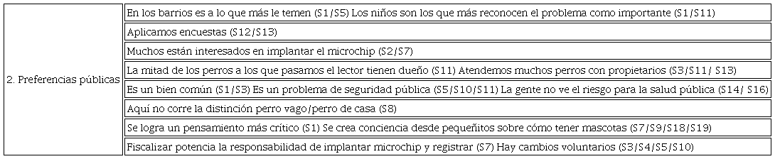 Al levantar información formal e informal en las comunidades, el régimen refleja que los perros vagabundos son un problema que afecta la calidad de vida de las personas, siendo los niños el segmento más sensible de la población. A nivel de las preferencias, estas se identifican a través de encuestas para apoyar la programación del trabajo de intervención. Esto concuerda con la literatura, que establece que aprender sobre una variedad de puntos de vista es bueno para la regulación (Baldwin y Black, 2016).