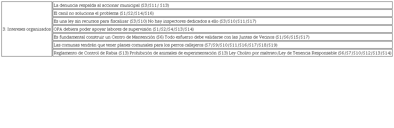 En el establecimiento de criterios y objetivos, la evidencia indica que la organización de intereses sectoriales contempla controles futuros más racionales de la población de perros y gatos, donde la discusión se centra en el modelo institucional y en la función de los Caniles Municipales. Las OPA y algunos funcionarios municipales han propuesto ampliar las competencias de estas instituciones, y así fortalecer sus capacidades para tratar clínicamente el dominio y mantener y/o reubicar a los perros y gatos abandonados. Desde el punto de vista de la organización de los actores, el criterio de control se basa en legitimar la opinión de las bases sociales, especialmente las Junta de Vecinos.