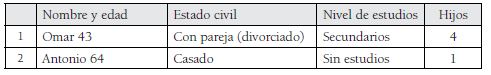 La muestra fue seleccionada por conveniencia, teniendo en consideración las características de su trayectoria criminal e intentándose minimizar las diferencias sociodemográficas entre los participantes (Tabla 1). Todos ellos contaban con historial de abuso y tráfico de estupefacientes, con una actividad delictiva estable en el tiempo -duración mínima de 15 años-, con comienzo en la adolescencia -entre los 13 y los 17 años- y caracterizada por el uso recurrente de violencia grave -tres de ellos cometieron un homicidio, dos una tentativa de homicidio, y todos eran responsables de diversos delitos de lesiones severas. Los seis habían ingresado en prisión al menos en dos ocasiones.