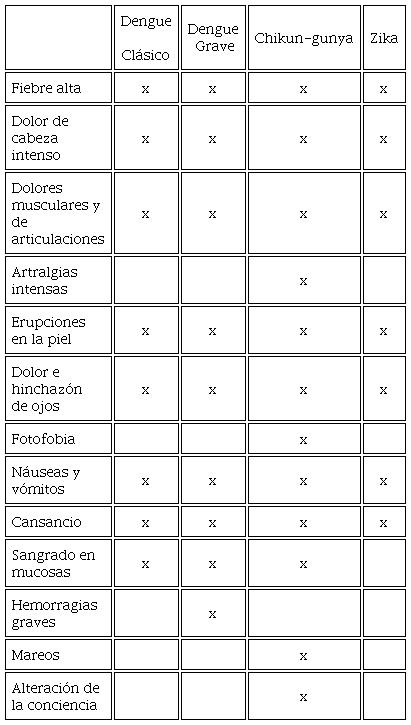 En 2015 y 2016 Yucatán, como todo el país, registró el brote de dos nuevas patologías transmitidas por el mosquito Aedes aegypti: chikungunya y zika. Aunque la epidemiología biomédica las clasifica como entidades nosológicas distintas, desde la experiencia sociohistórica estas enfermedades comparten rasgos: son transmitidas por un mosquito y los métodos de prevención son los mismos; sus signos y síntomas son semejantes (Tabla 2), y se pueden confundir fácilmente; y la terapéutica biomédica es prácticamente la misma. Lo que las podría distinguir es que el chikungunya ocasiona artralgias que pueden ser incapacitantes y prolongadas, y el zika, implica riesgo de microcefalia para los fetos en gestación (Rodríguez, 2016).3