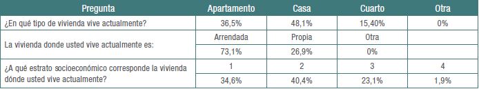 Con respecto a la vivienda de vendedores encuestados, la mayoría viven en arriendo en los estratos 1 y 2, esto puede ser una posible consecuencia del trabajo en la informalidad, donde con un ingreso mensual promedio inferior a un millón de pesos, para la mayoría de ellos es difícil contar con dinero suficiente para acceder a una vivienda propia o, incluso, para pagar un arriendo en un estrato más alto. Un aspecto positivo es que en la mayoría de las viviendas se cuenta con los servicios públicos básicos, tales como acueducto, alcantarillado, gas natural y energía eléctrica, lo cual mejora su calidad de vida.