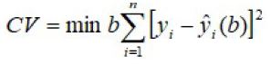 En donde dij es la distancia euclidiana entre el punto con coordenadas (ui, vi) y el punto de coordenadas (uj, vj). El parámetro b se calcula a partir del criterio de validación cruzada:
