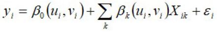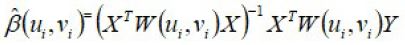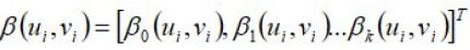 Donde (ui, vi) representan las coordenadas que describen la ubicación geográfica de la observación. Mediante métodos de estimación, tales como el de máxima verosimilitud o el de mínimos cuadrados ordinarios, es posible estimar el vector de parámetros: