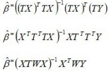 Como lo muestran Agudelo, Martínez et al. (2021), en el modelo lineal general Y= Xβ + U, premultiplicando por una matriz de ponderaciones T no singular, se obtiene: