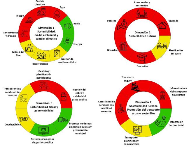 En la dimensión urbana, están casi todas las áreas como potencialmente problemáticas: el uso del suelo y ordenamiento del territorio, la desigualdad y la pobreza urbana, la movilidad y el transporte, la accesibilidad y la educación. Solo el tema de integración barrio-ciudad ha resultado sostenible reflejado en la proximidad del barrio al centro urbano.