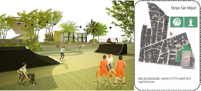 Considerando el Parque de San Miguel como eje articulador de los diferentes espacios resultados de la implementación de las estrategias de Mejoramiento Integral de Barrios, la comunidad también aportó insumos para consolidar una visión sobre este escenario, en el que fueron destacados elementos como la movilidad y la accesibilidad peatonal, la recreación, el desarrollo de actividades deportivas y la integración social y comunitaria de la población en general.