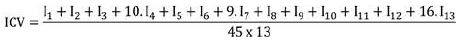En la ecuación, nótese que el ajuste hace incluir a la mayoría de los componentes con sus propias anotaciones como aporte al índice estimado, mientras que las componentes I4, I7 e I13 son incluidas, respectivamente, con aportes que equivalen a 10, 9 y 16 veces lo que anotan originalmente.