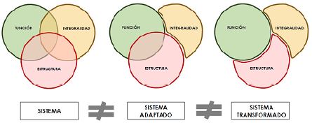 Un sistema adaptado conserva su funcionalidad, al igual que su estructura, pero no su integralidad. Si la estructura del mismo tiene que ver con sus elementos constitutivos, la integralidad hace referencia a la forma en que se relacionan estos, o a la naturaleza de sus propias relaciones, y de cómo estas se dan en distintas condiciones.