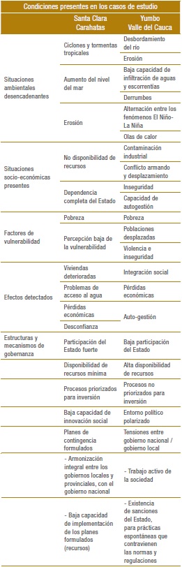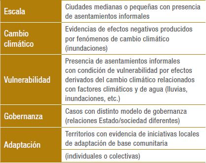 Para este análisis se parte de ejercicios investigativos previos que otros autores han adelantado en países como Colombia, Chile, Cuba y Haití, seleccionando ciudades con problemáticas derivadas del cambio climático que fuesen similares, de acuerdo con las características expuestas en la tabla 1.