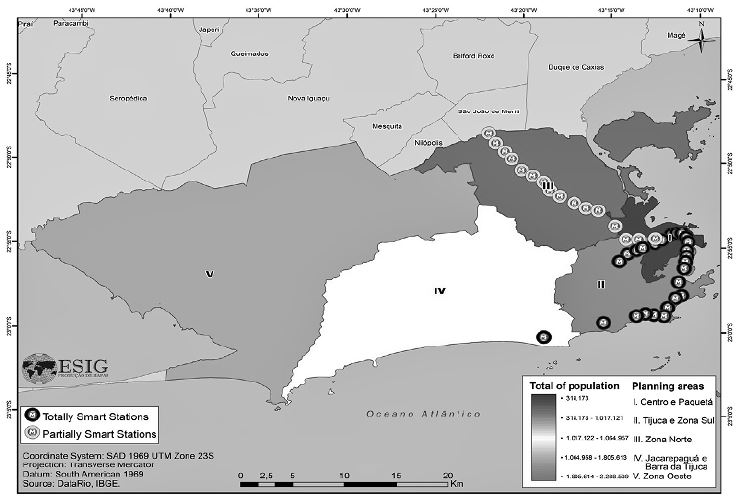 El resultado de la investigación demuestra que la ciudad de Río de Janeiro cuenta con distintos sistemas inteligentes de movilidad urbana, desde aplicaciones donde es posible obtener información en tiempo real sobre los desplazamientos, situación de un autobús o disponibilidad de bicicletas en las estaciones, además de paneles informativos que mantienen informados al usuario sobre el tiempo de llegada del metro o tranvía a una estación y sobre cómo obtener las tarjetas inteligentes que facilitan el pago para acceder a los diferentes sistemas. Sin embargo, se cuestiona la ubicación de esta tecnología, porque se observa que existe una selectividad espacial que prioriza unas zonas en detrimento de otras, como se verá más adelante.