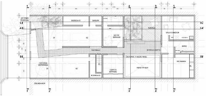 En la planta baja del proyecto se proyectó la célula habitacional de la hija, colindando con el estacionamiento para cuatro coches, unas bodegas y un cuarto de servicio. El departamento se ubica en el área donde los abuelos habían tenido, además de los dos coches, sus habitaciones públicas, estancia y cocina. Se adecuó la cocina, la estancia, el cuarto de lavandería, el baño y dos habitaciones que están detrás de un patio. La célula de habitación de la hija, pese a ser de un tamaño menor que los demás departamentos, quedó contenida en su propio espacio al fondo, con una privacidad interesante, con terraza y su vestibulación.