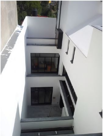 Es una luz que se suma a la unidad estética deseada, centrada en el respeto al carácter de modernidad de los años cincuenta con el que la madre está vinculada emocionalmente, con el añadido del gusto por lo natural, acorde con la sensibilidad ecológica actual. La existencia de patios se aprovechó para acomodar terrazas y jardineras con sistemas de riego automático, con la idea que convertir el espacio en un vergel (que fuera agradable y al mismo tiempo creara un microclima), aunque no se pudieron tomar fotos de la última etapa. La casa, pese a su relativo encierro y falta de vistas, pudo así respirar hacia el interior por medio de sus patios y terrazas, con lo que se logró aliviar, por ejemplo, el confinamiento en épocas en que fuera necesario. La sensación de espacialidad se mejoró gracias a este recurso, junto a la optimización del asoleamiento (se ensancharon las ventanas), algo fundamental en la Ciudad de México, donde en época de lluvias (junio-octubre), el ambiente puede llegar a ser muy gris. En los dos niveles superiores se colocaron ventanas que prolongan el muro, a modo de tribuna, las cuales pueden funcionar como ventanas habitables, de contemplación y reposo, como las de los conventos, o como remates para decoración iluminada.