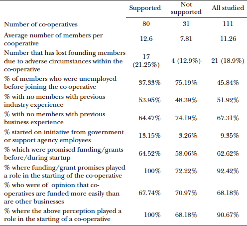 The findings in respect of the differences in the operations and management of supported versus unsupported worker co-operatives are summarised in Table 3.